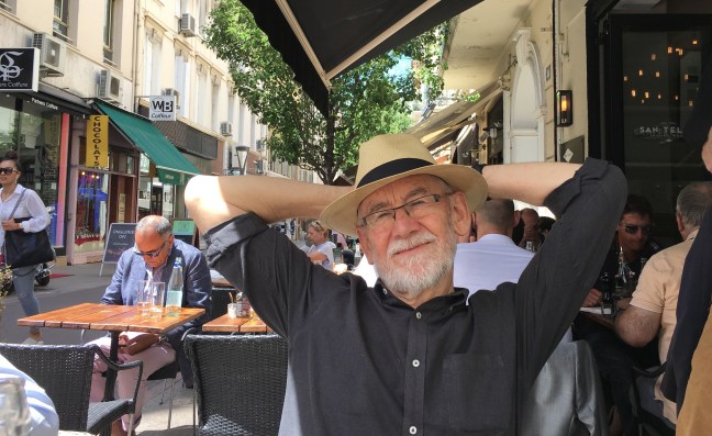 Boy Fell In Pond was represented by John Harris and Jan Zane at the 70th Cannes film festival and market in May. (Picture: John hard at work in Cannes cafe.)